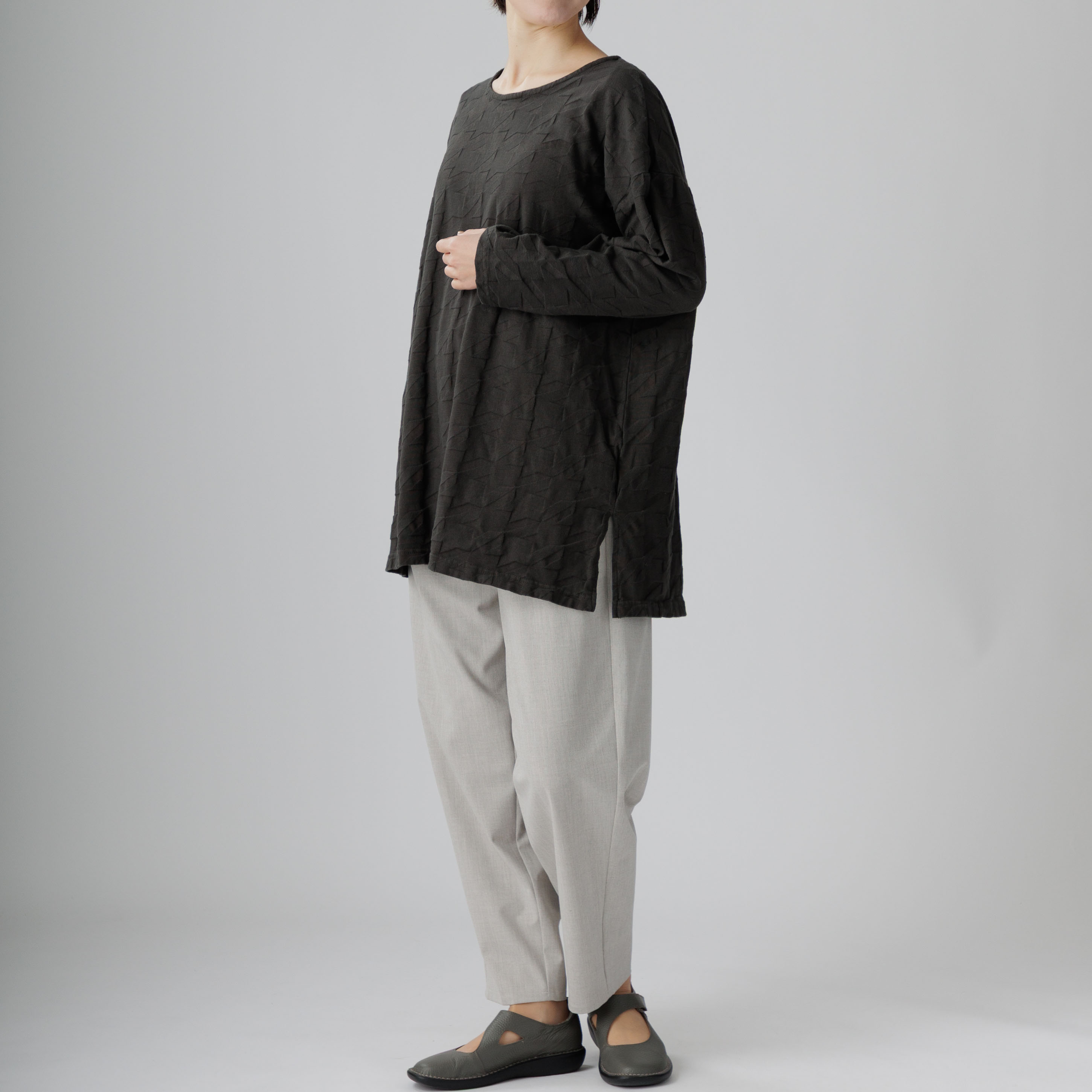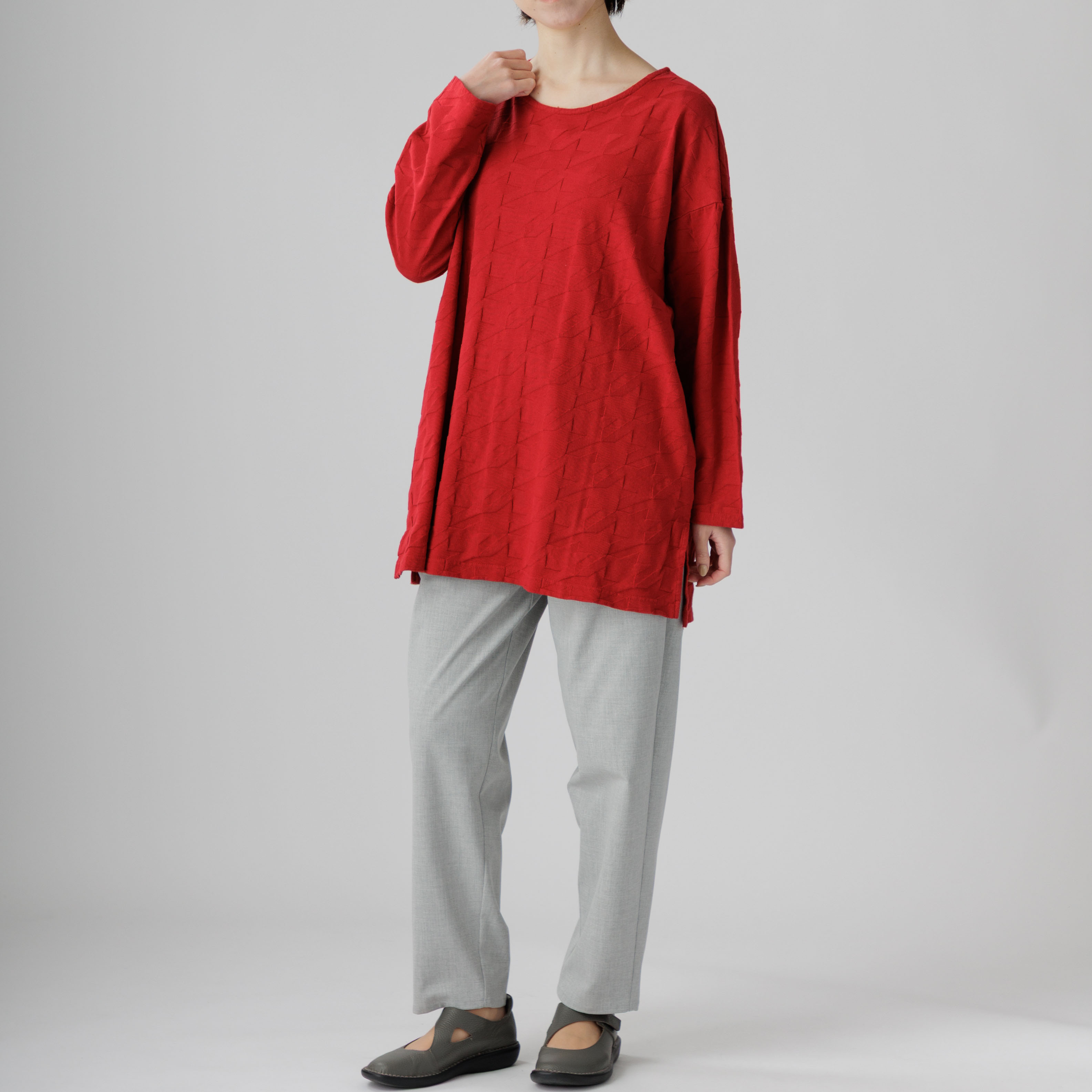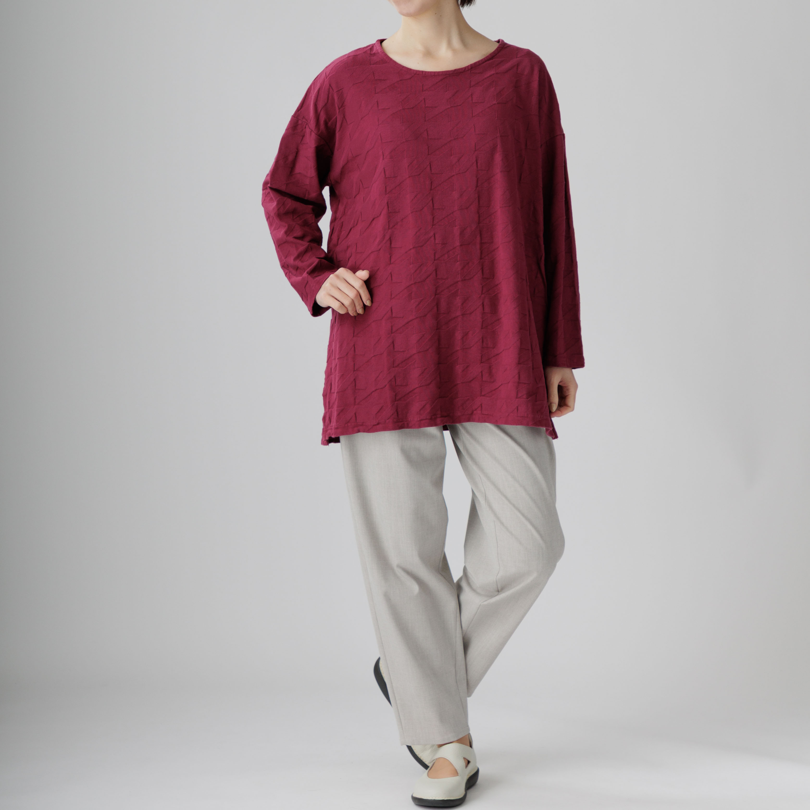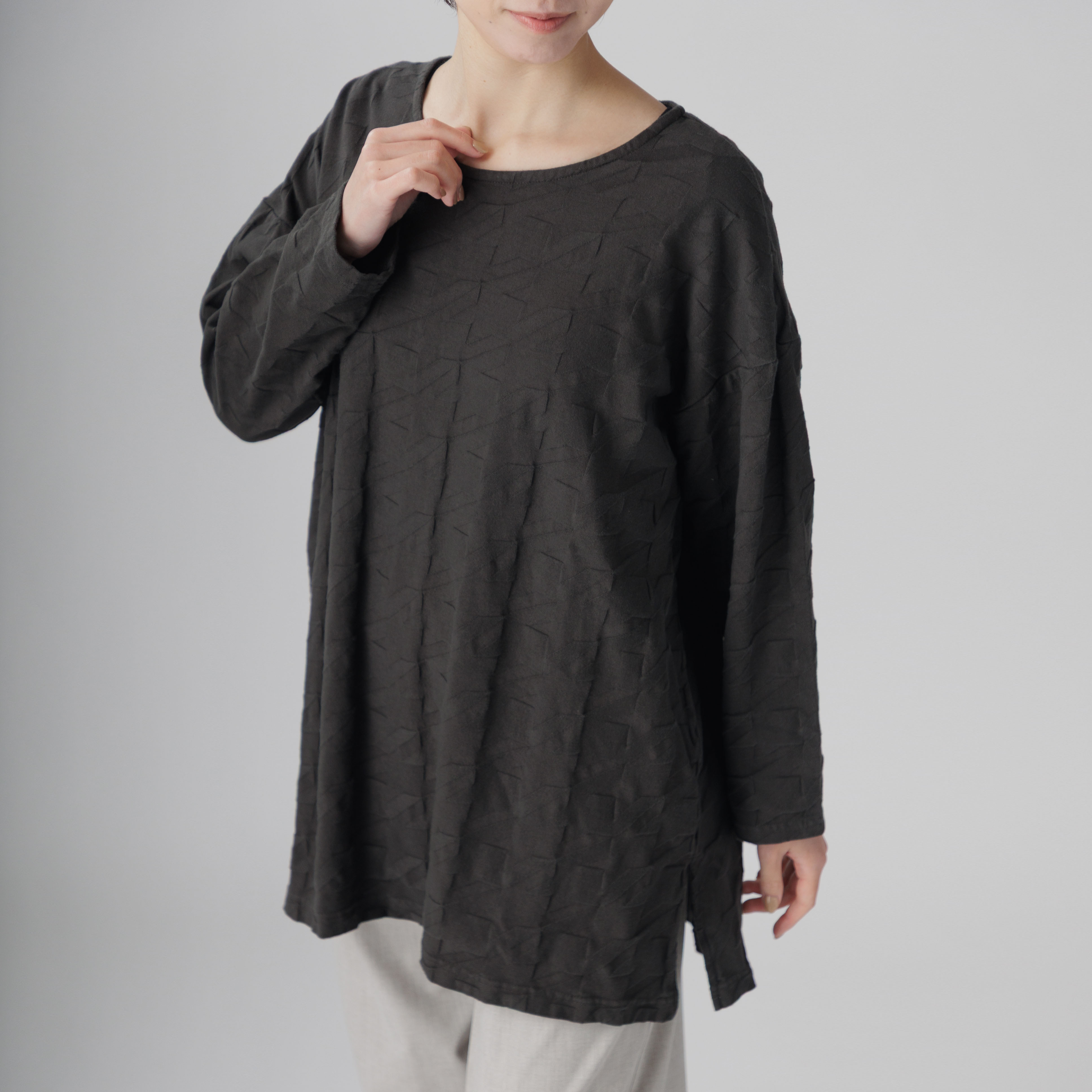 ゆったりとしたラインと綿100%の爽やかな着心地が魅力。