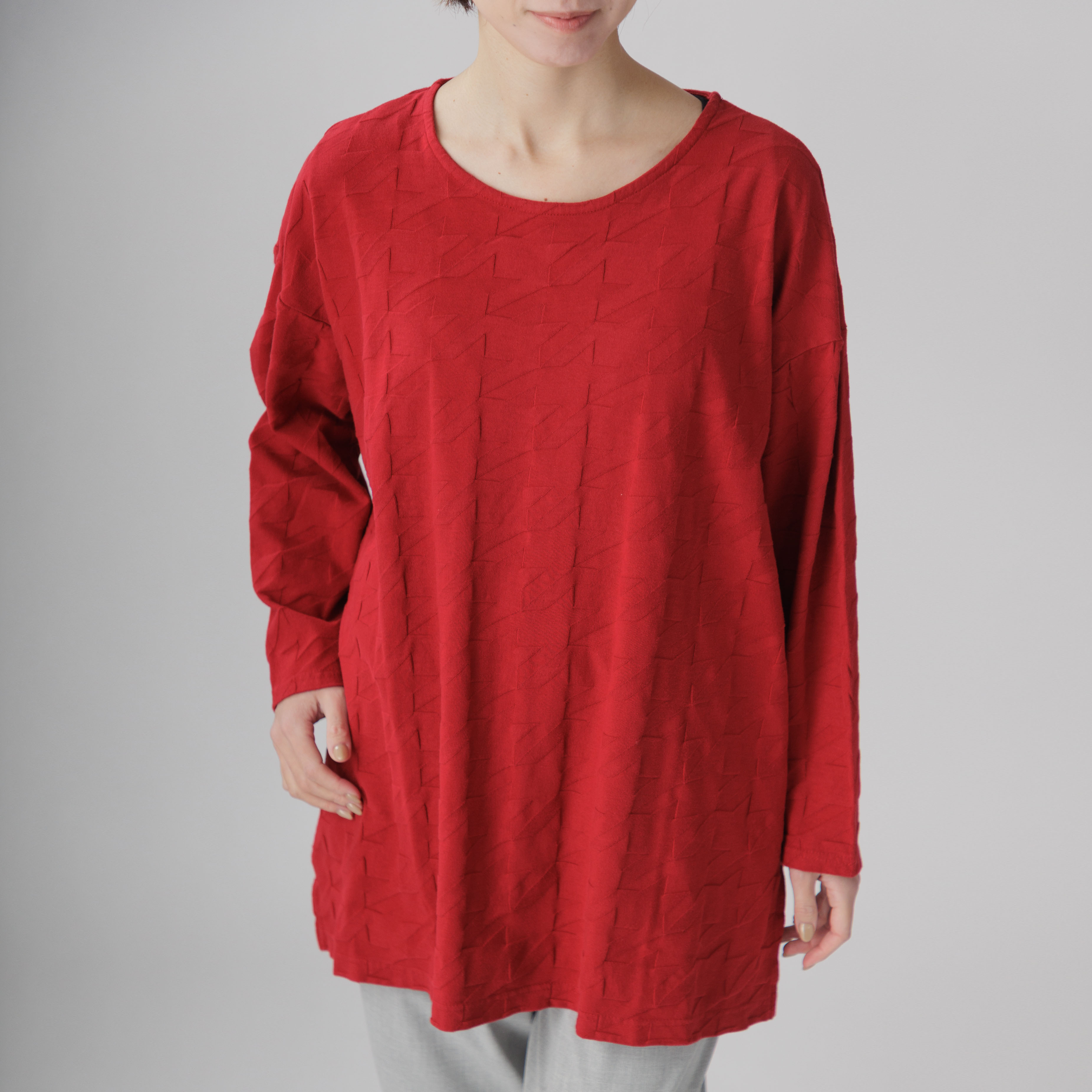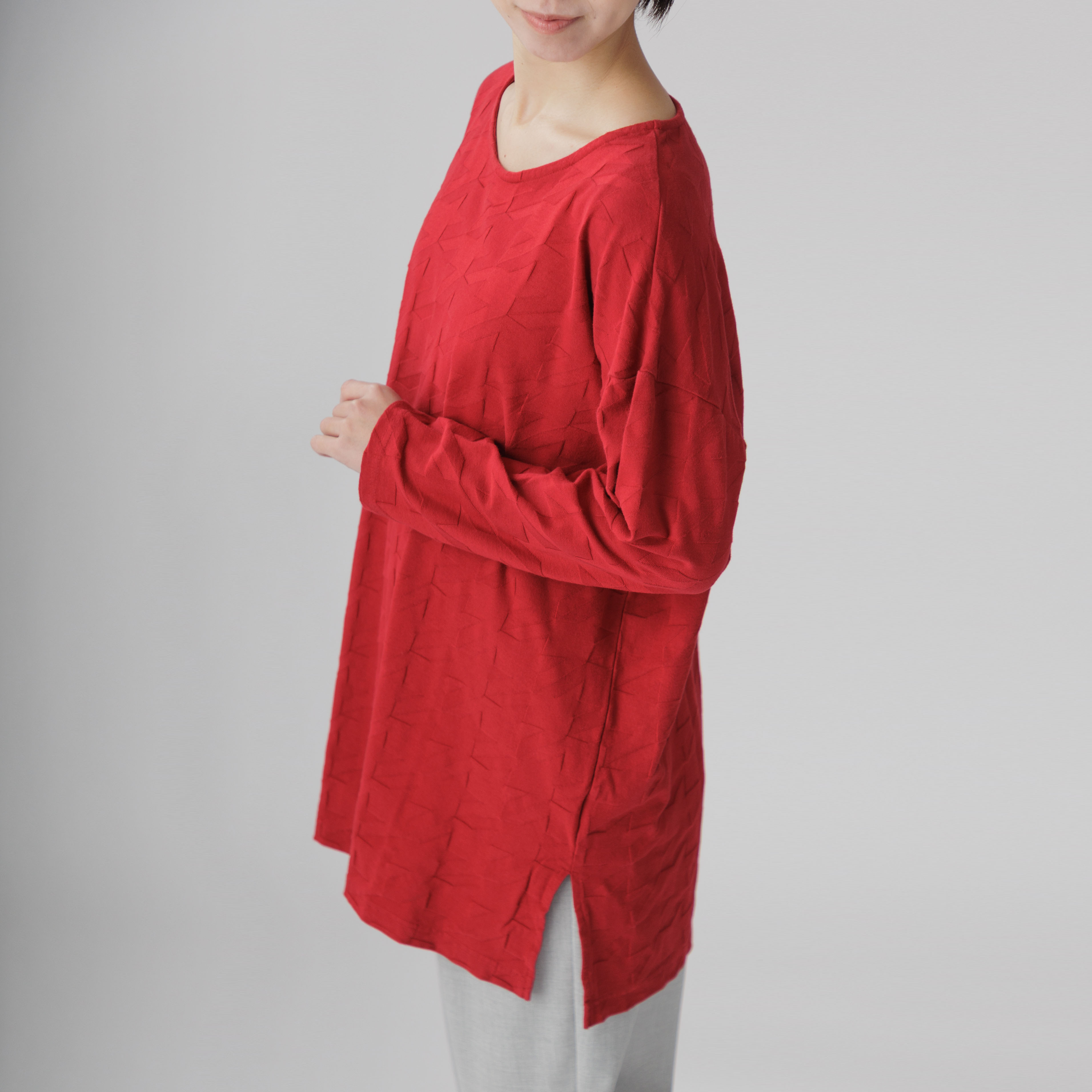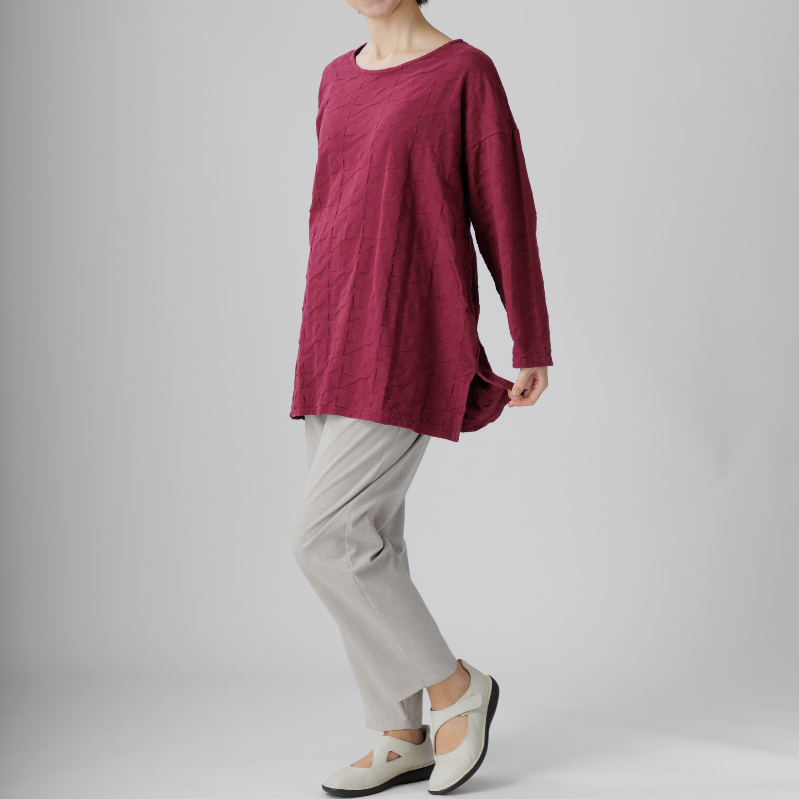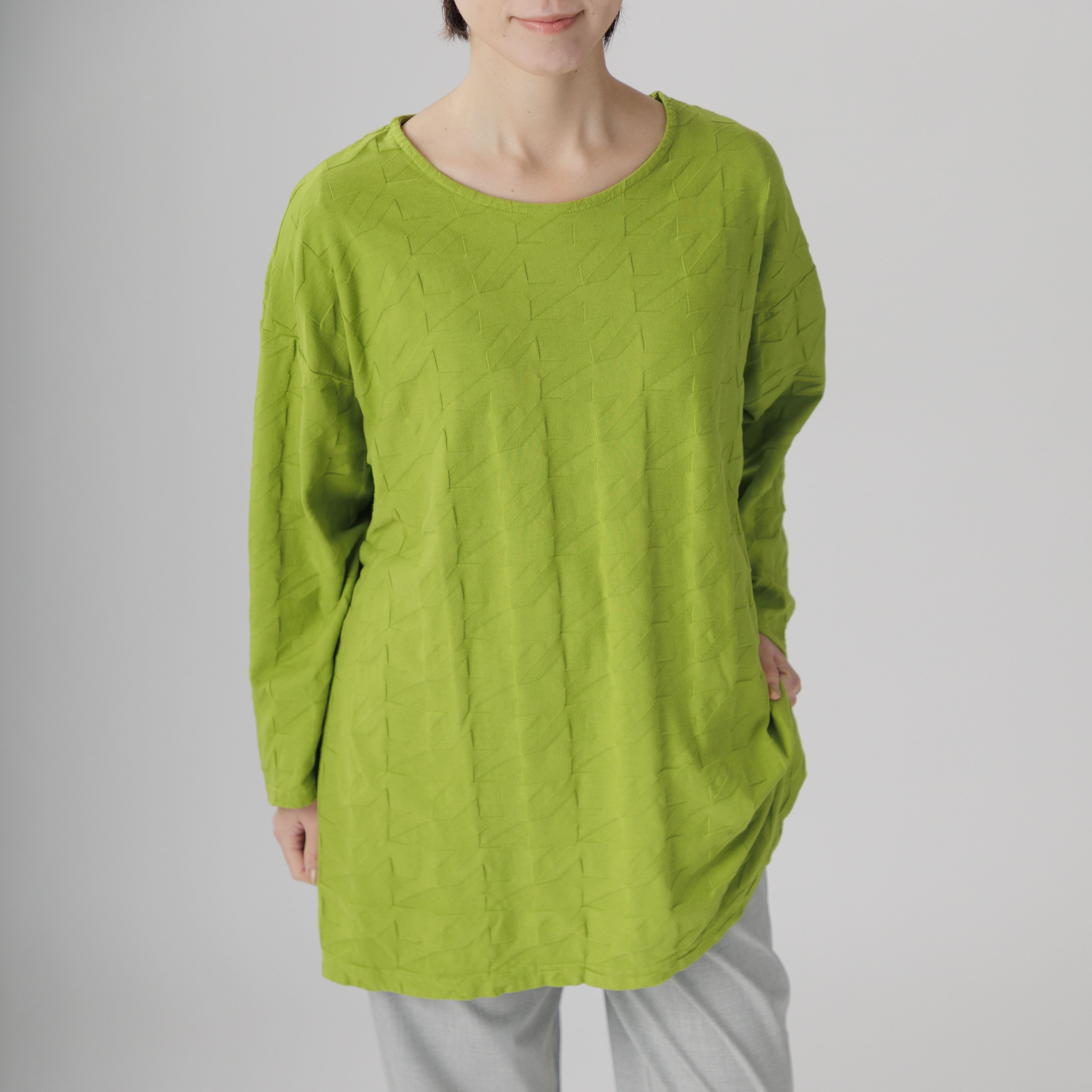 ゆったりとしたラインと綿100%の爽やかな着心地が魅力。