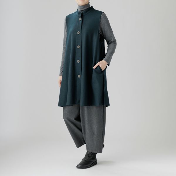 上質なウール100%の圧縮素材を使用したロングタイプのベストが新登場。