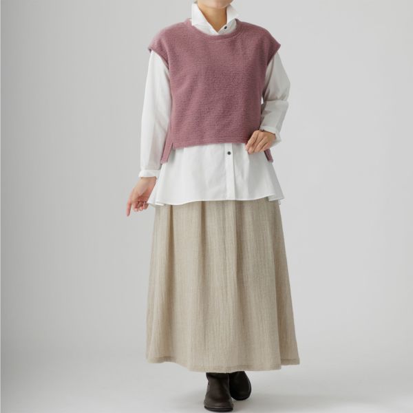 保温性の高い膨らみのある素材を使用したフレンチ袖のベストはいかがですか。