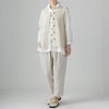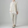 麻のパンツと組み合わせた天然素材ならではのナチュラルテイストの着こなしで、