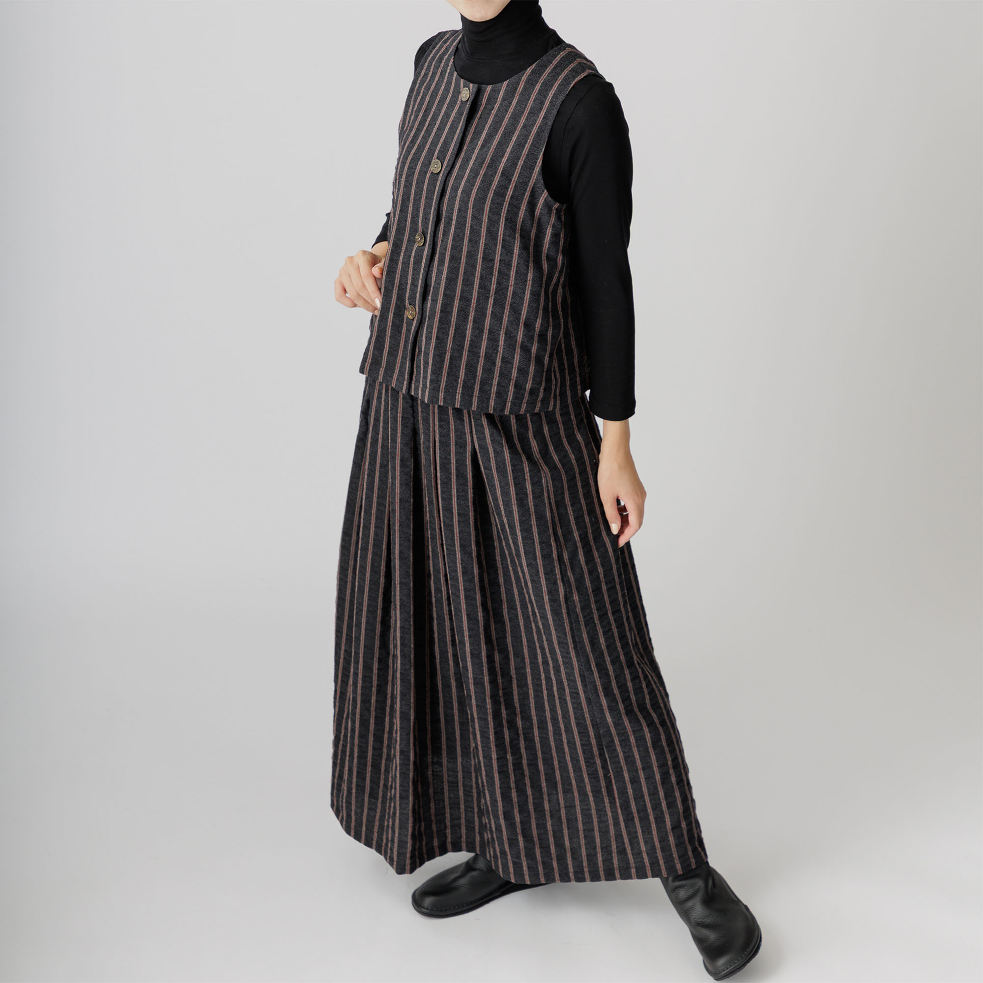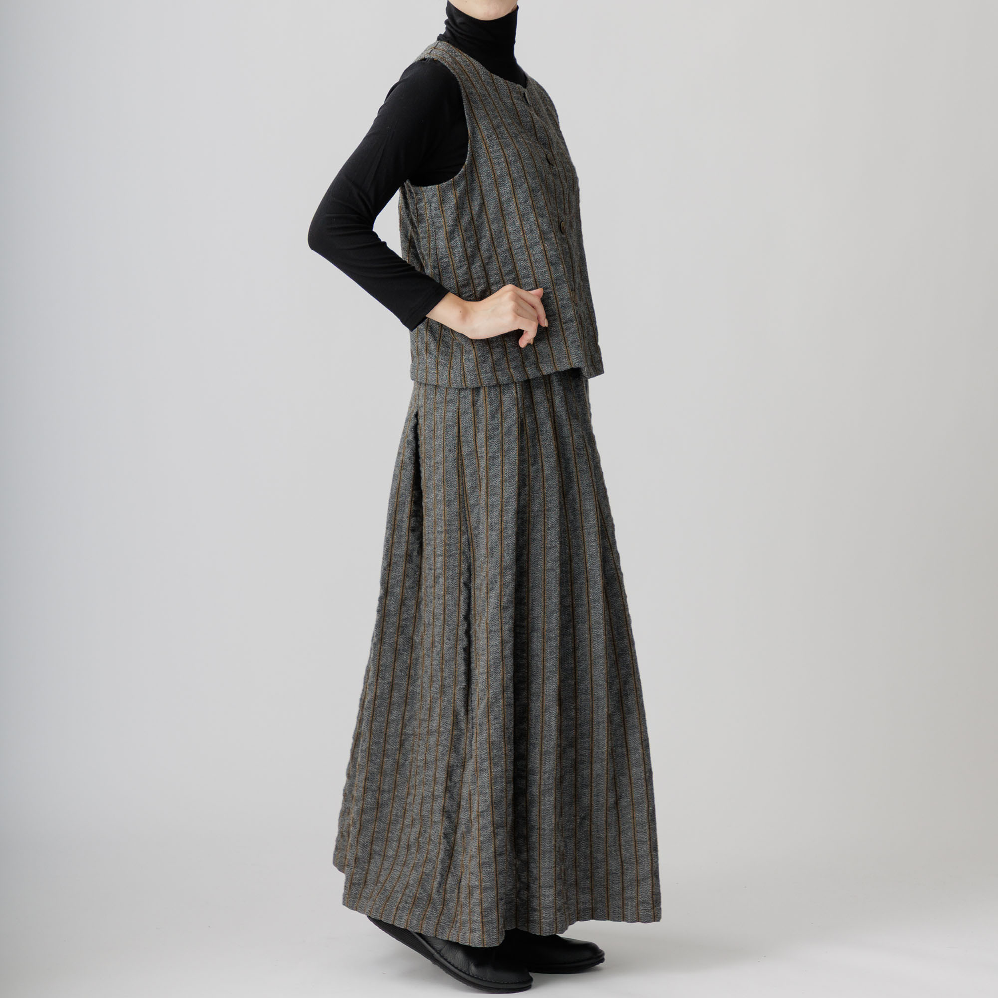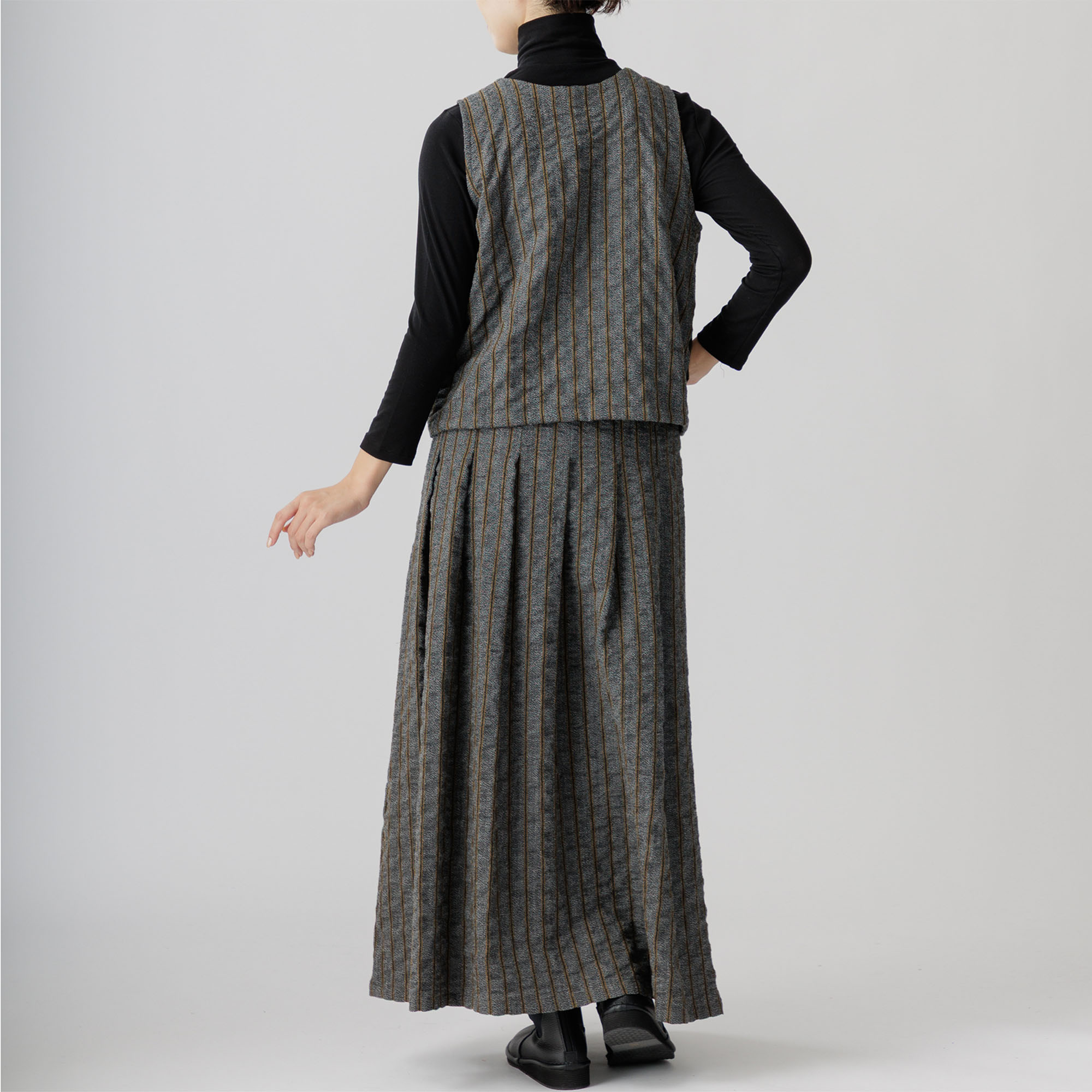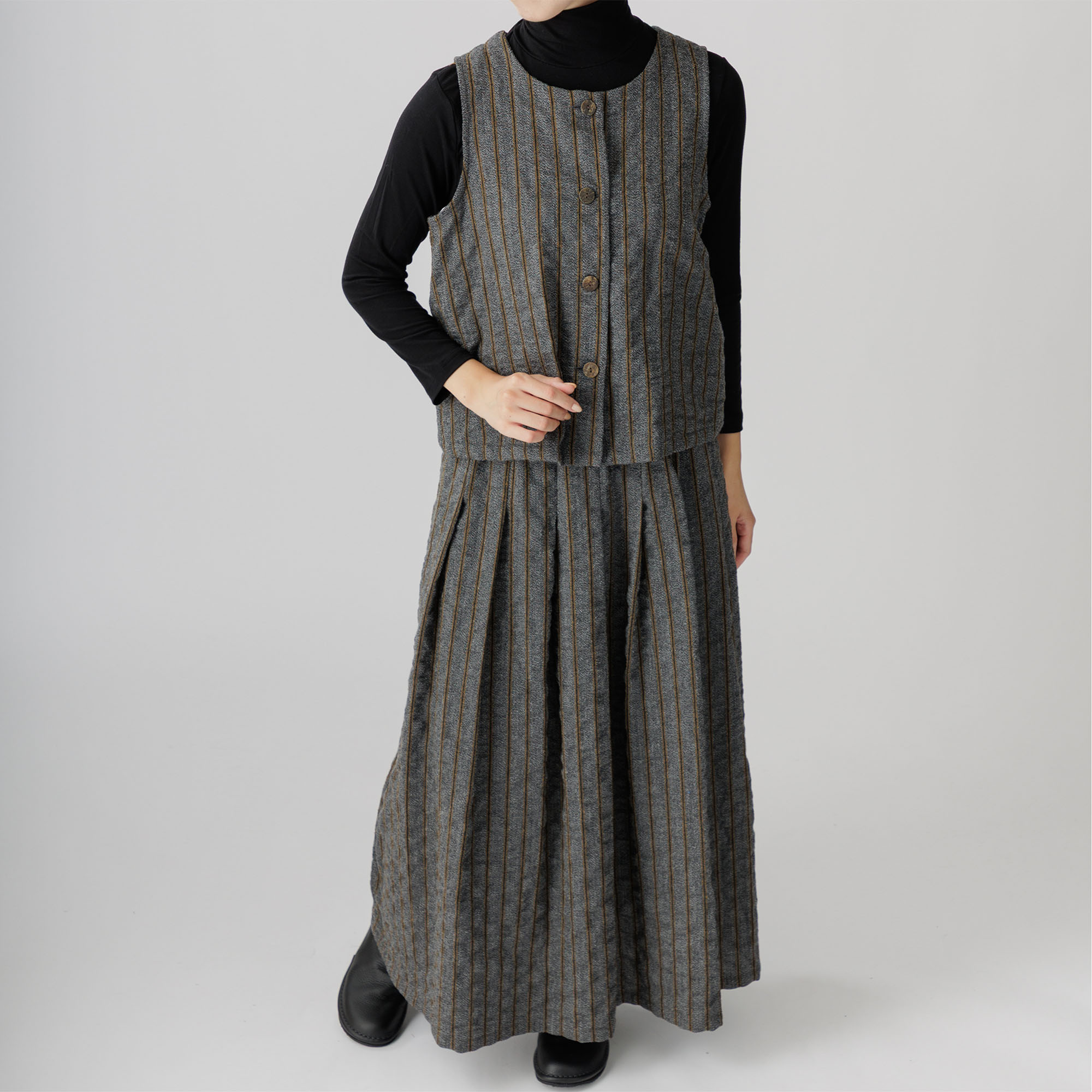ツイードの高い質感でセンスあふれるストライプ柄のベストはいかがですか。