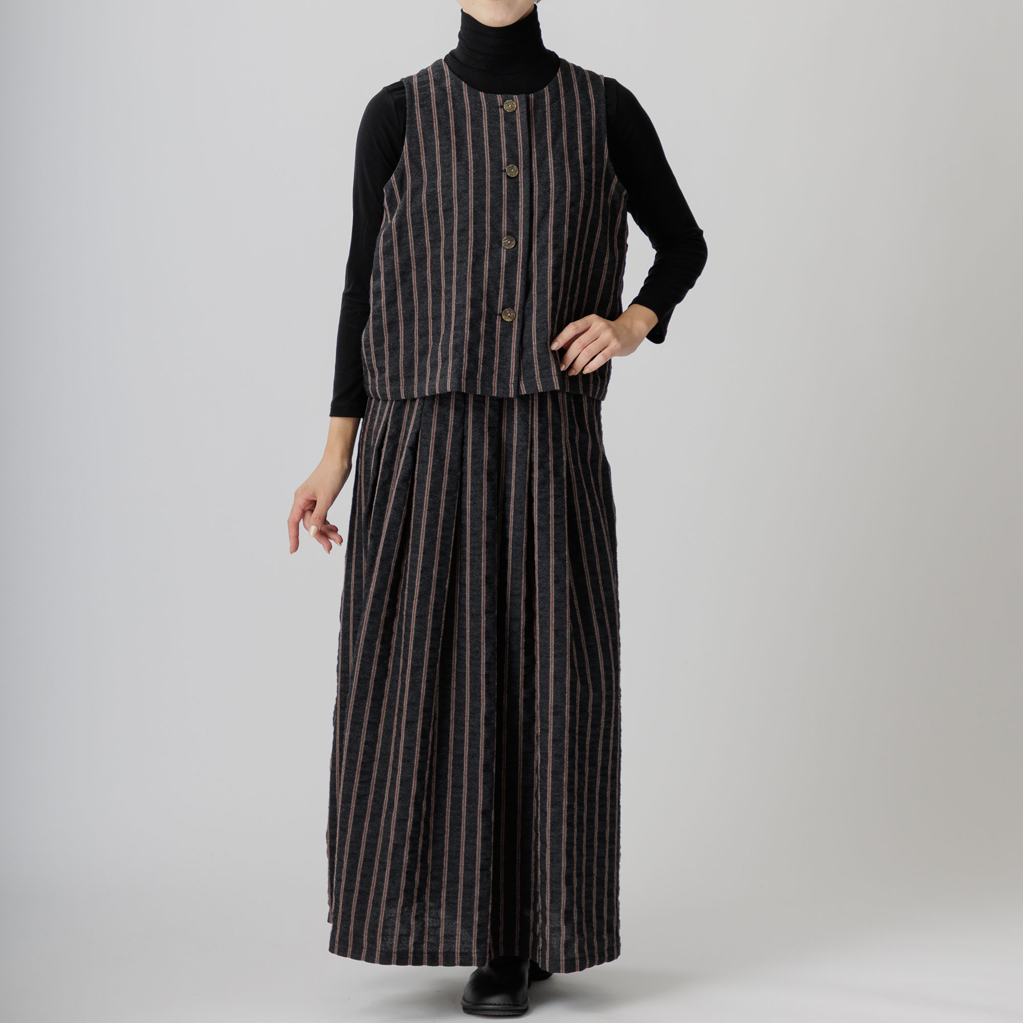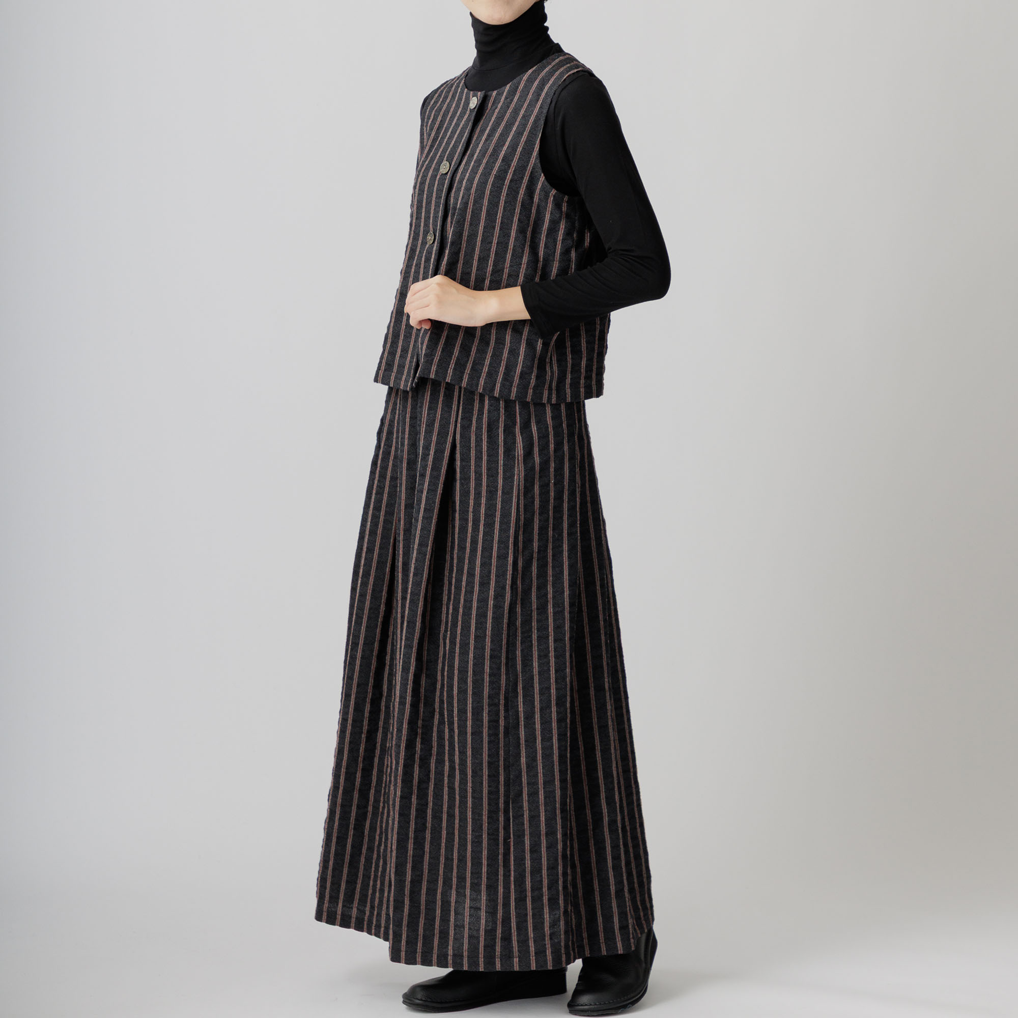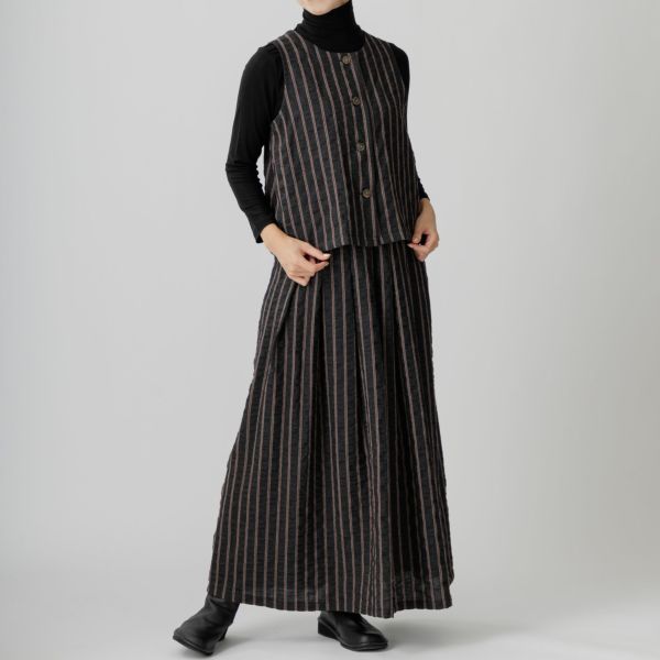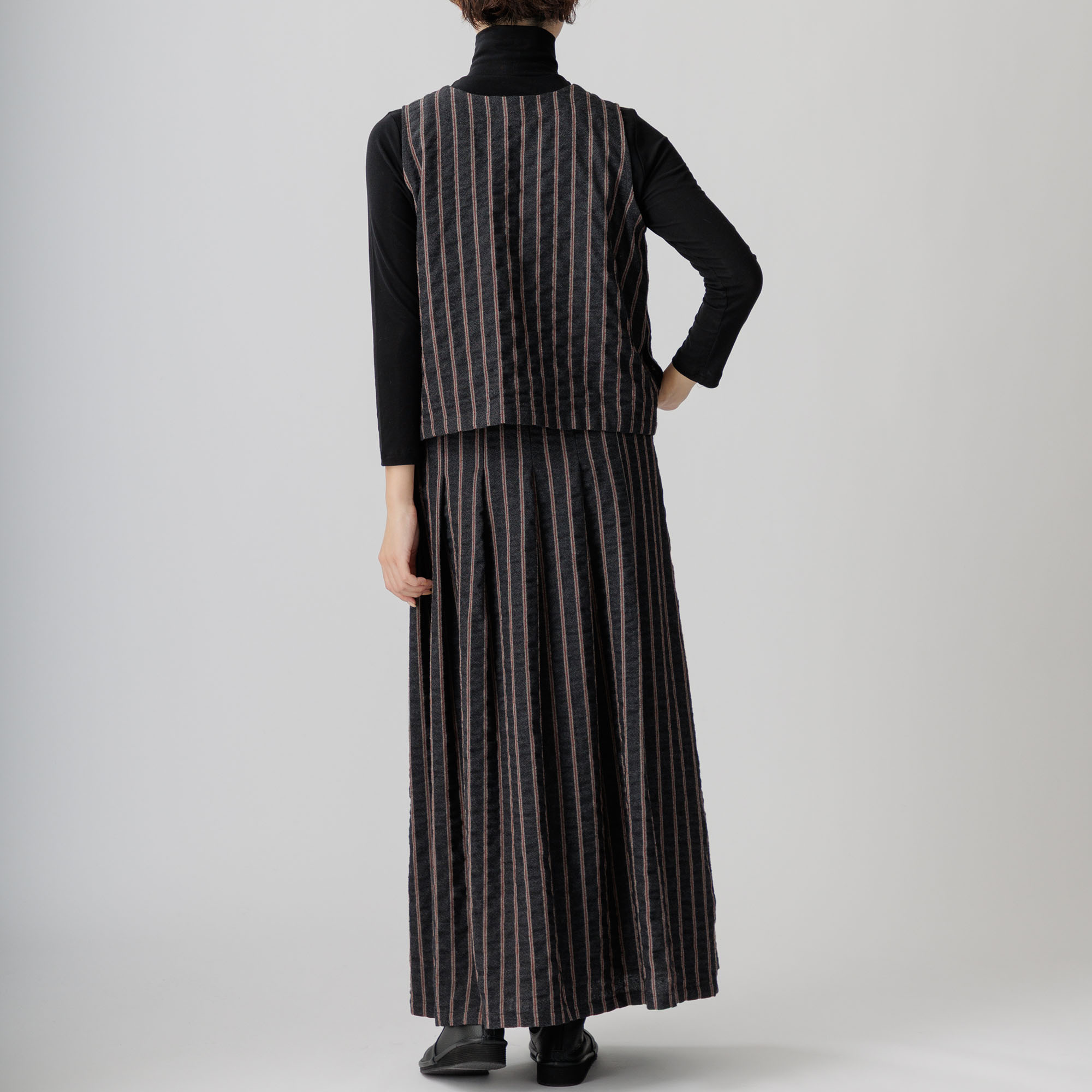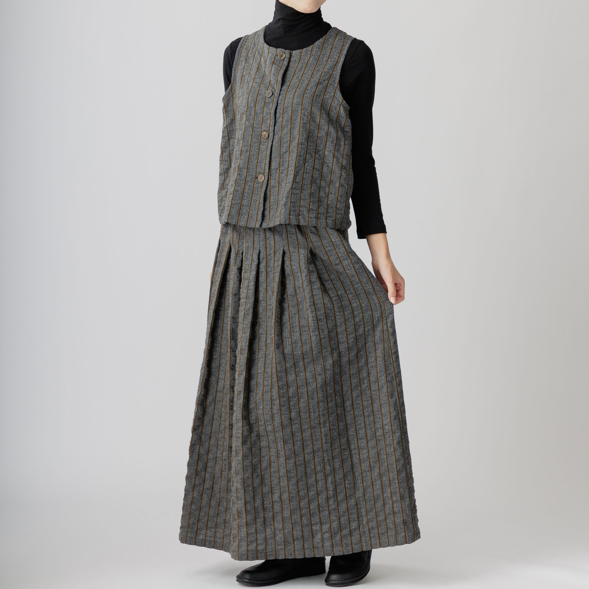 ツイードの高い質感でセンスあふれるストライプ柄のベストはいかがですか。