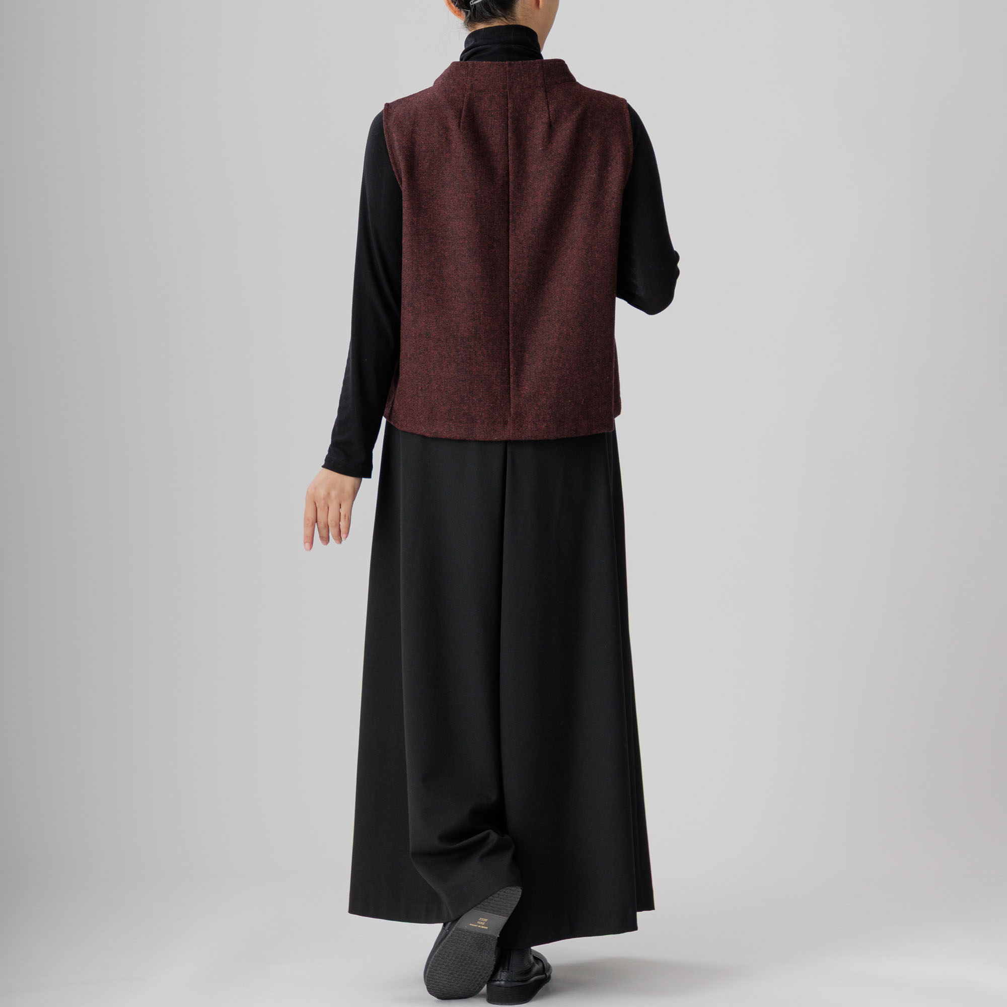 暖かな着心地が嬉しい、早春の装いに最適なウール混のベストはいかがですか。