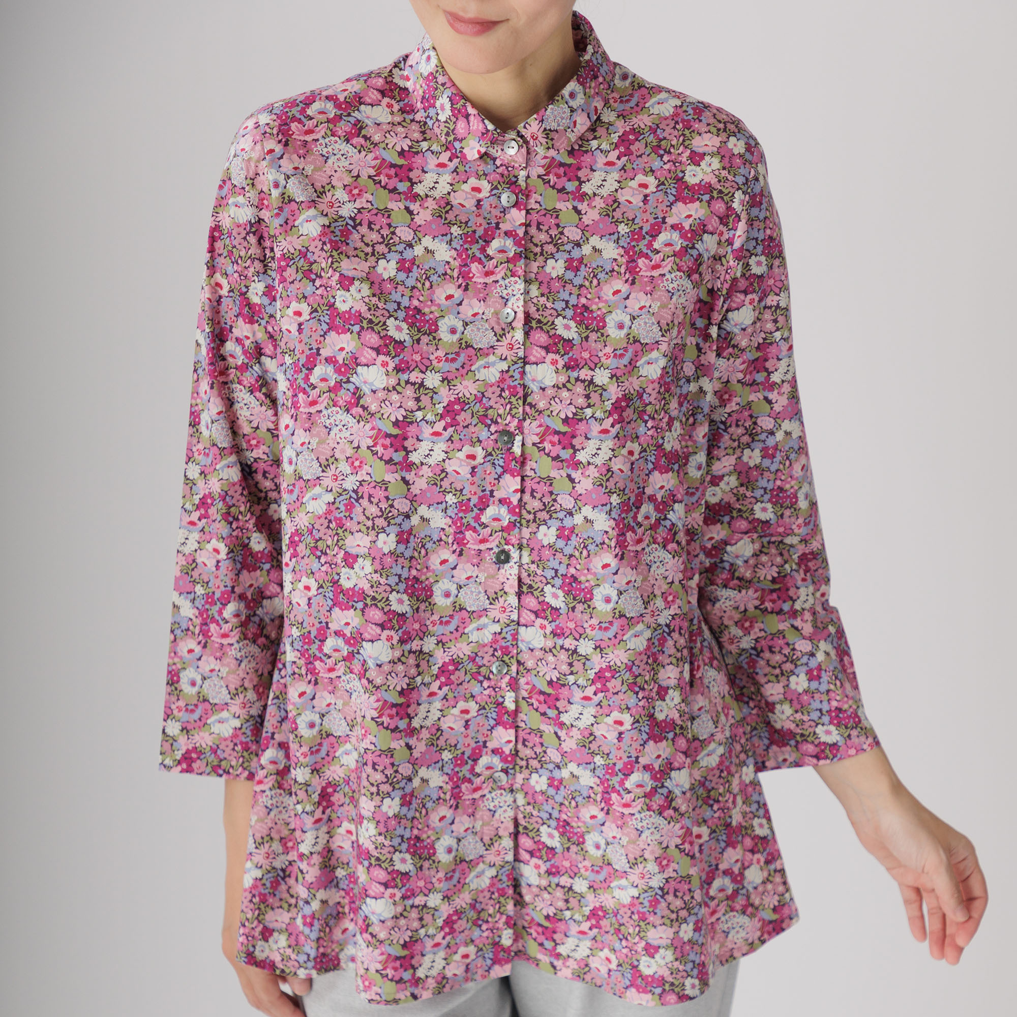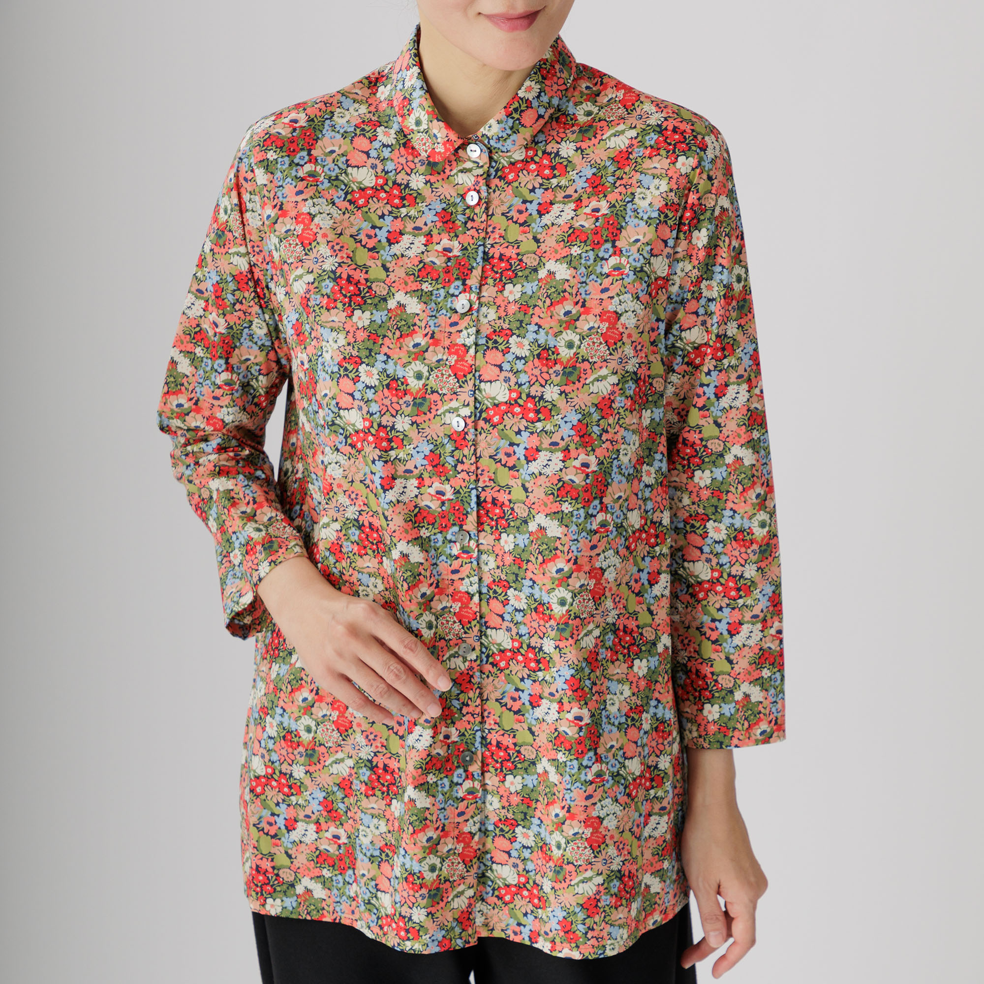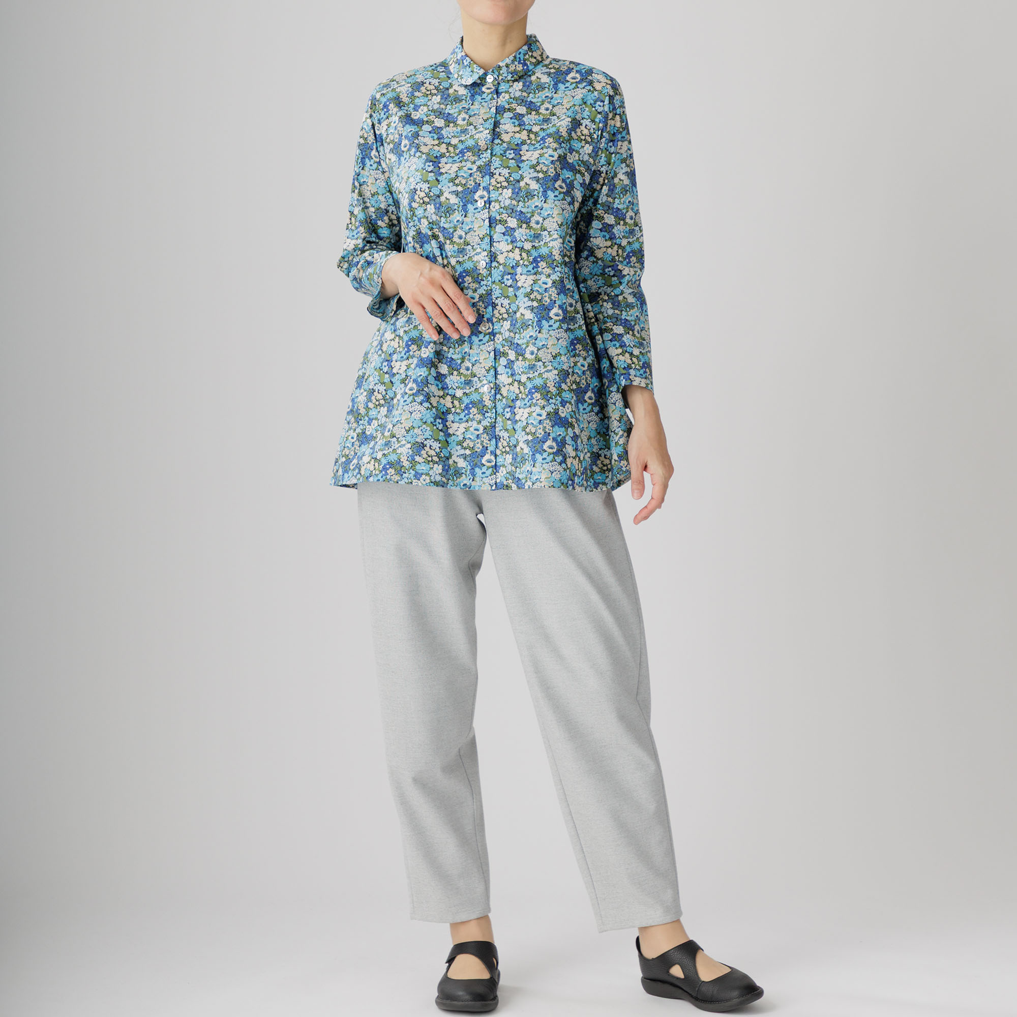 前開き花柄Aラインブラウス 624-02 Series