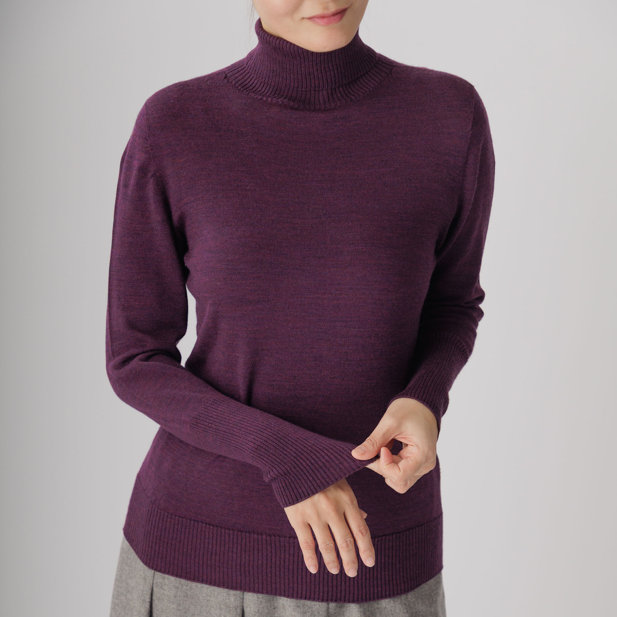 極細でしなやかなスーパーファインメリノを使用しており、滑らかな肌触りと保温性が抜群。
