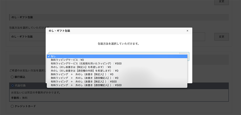 ショッピングカート ▶ ご注文手続き ▶ のし・ギフト包装